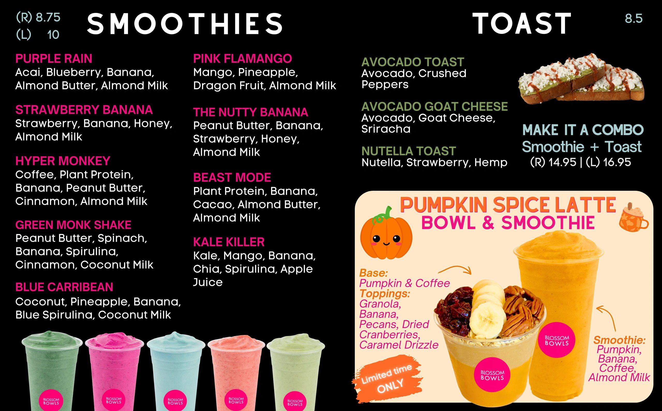 Our menu is predominantly plant-based, gluten-free, dairy-free and packed with nutritious superfoods.